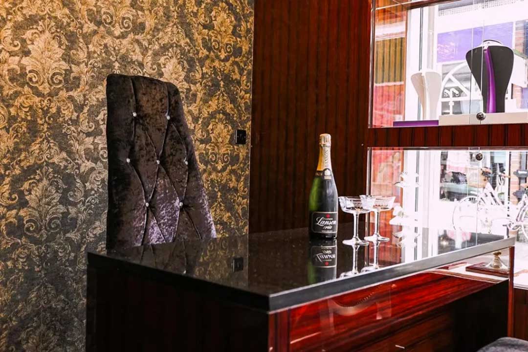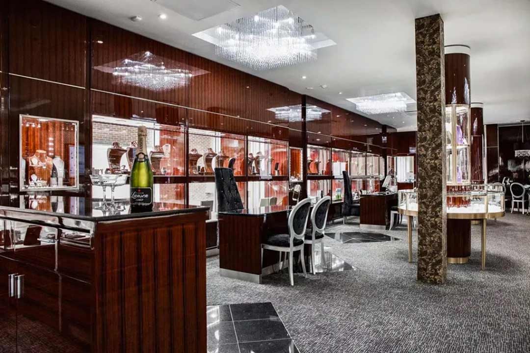 This jewelry store includes Show room, work shop, stock room, VIP room, and champagne bar. The total area is about 200 square meters.