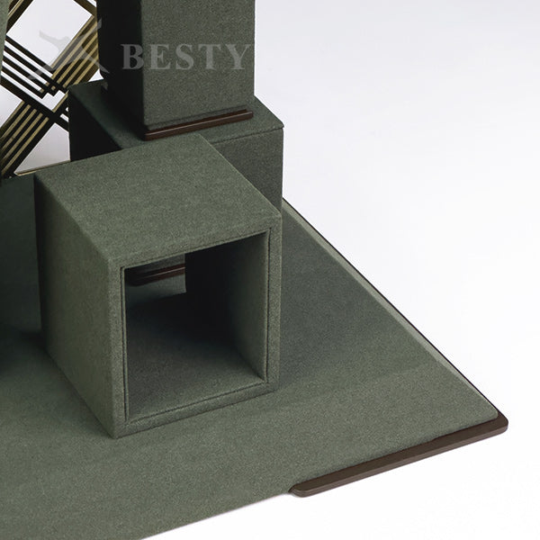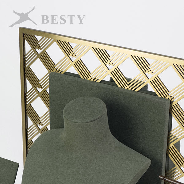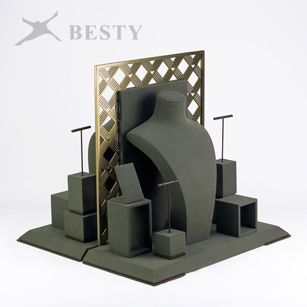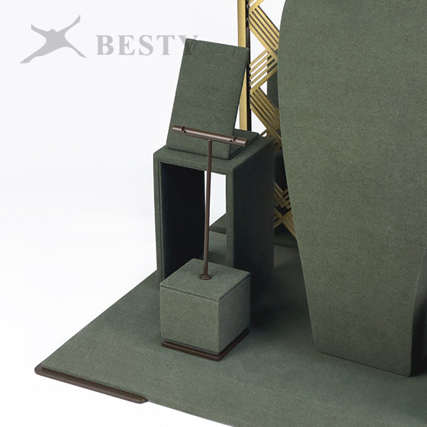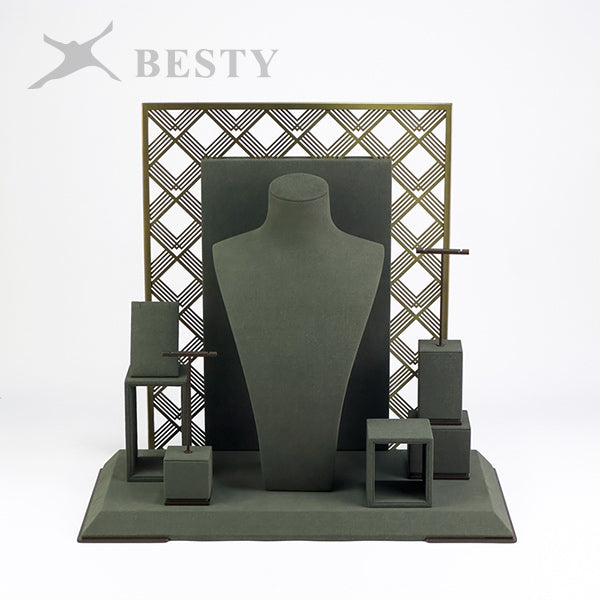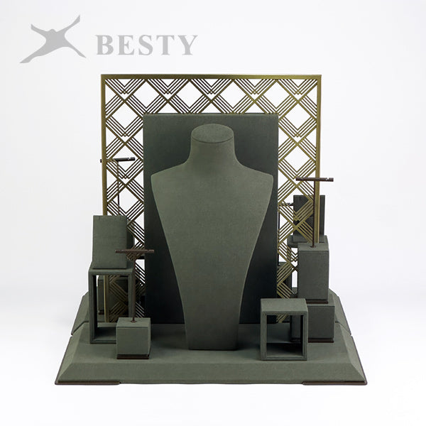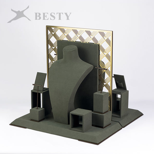 DS381 is a set of opal jewelry display stands suitable for shop front window showcase. Double side displays for necklace, pendant and earring, or single side displays with a removable base board.
